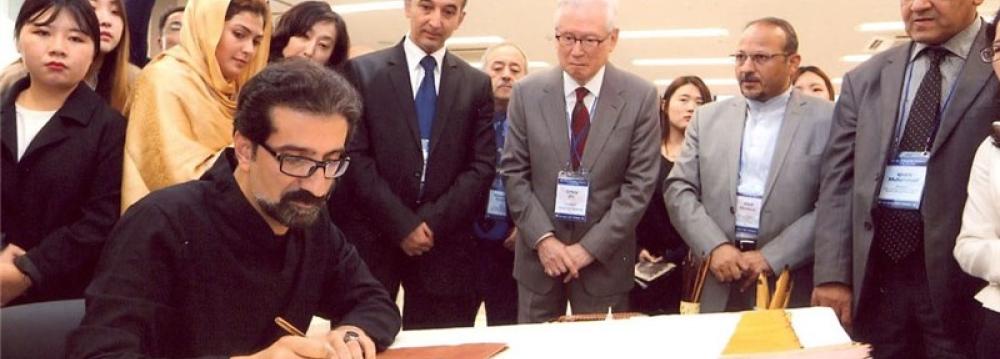 On the sidelines of a conference organized by the International Institute for Central Asian Studies (IICAS) at Keimyung University (KMU) in the South Korean city of Daegu last month, a series of calligraphy works by Iranian artist Reza Safari were displayed.