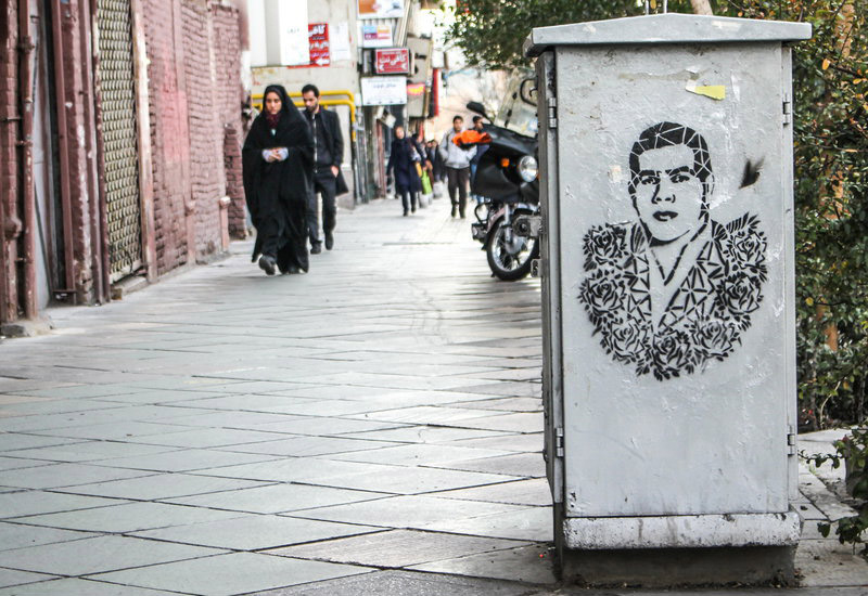 The artist earlier presented his stencil works of art portraying celebrated contemporary poet, Nima Youshij, and late author Samad Behrangi.