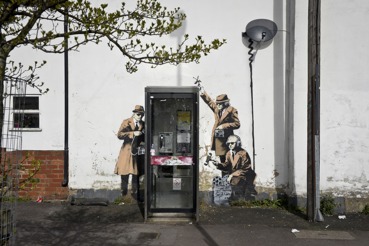 The piece, titled “Spy Booth”, depicted three men in trench coats using listening devices to tap into conversations at an actual public telephone box in Cheltenham, southwest England, AFP reported.