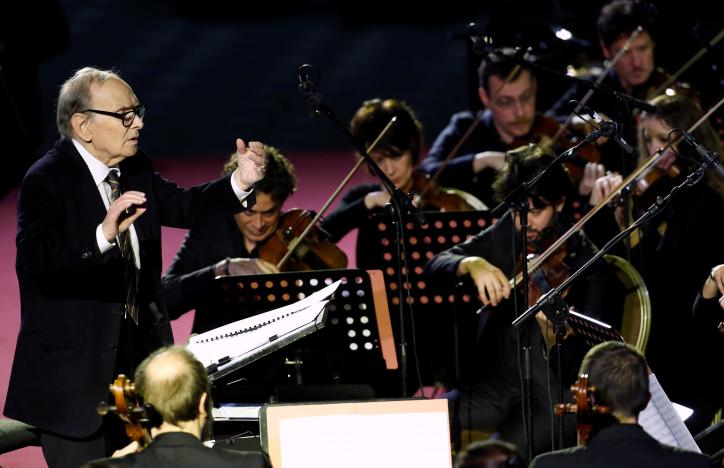 Morricone, 88, who won this year’s Academy Award for ‘The Hateful Eight’ directed by Quentin Tarantino, premiered a new, short composition for the event called ‘God, One of Us’, and also conducted the orchestra in some of his most famous film sound tracks.