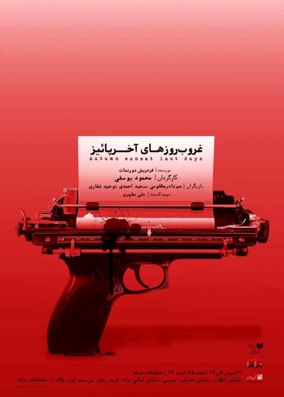 The 45-minute play starts at 7 pm. Drama Hall is located at No. 2, 1st Dead-end, Zohal Alley, Labafinejad Street, South Felestin (Palestine) Street, Enqelab Avenue.