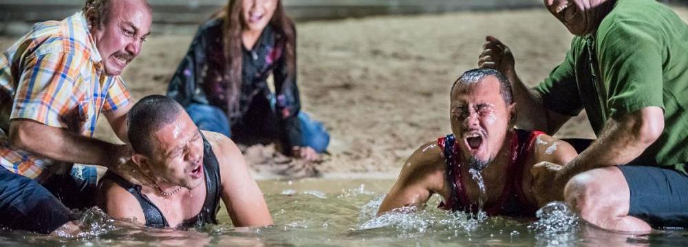 Caption: Reza Attaran (L) and Hamid Farrokhnejad (R) with Thai actors in a screenshot from the film