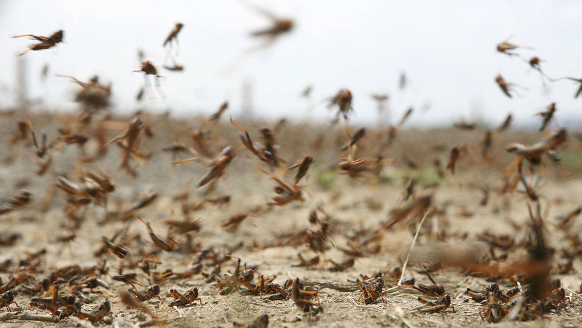 The desert locust is among the most dangerous pests that can destroy all greenery, including grains, fodder, vegetables, tree barks and even weeds on their path.