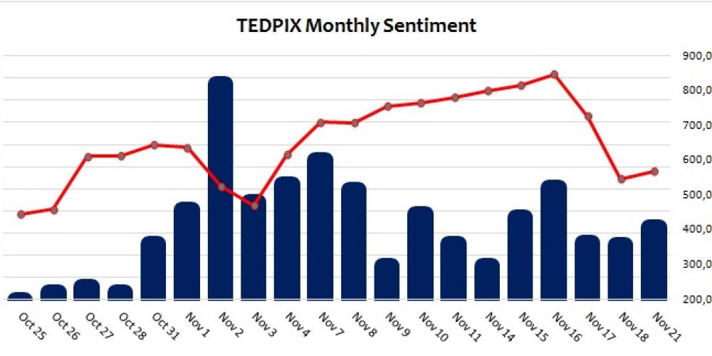 More than 8.2 billion shares changed hands in 585,000 transactions during the Iranian month that ended November 21, recording 10.6% and 8.4% decline in the number of shares and transactions respectively compared to the previous month.
