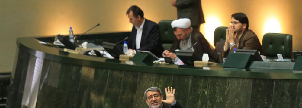 Interior Minister Abdolreza Rahmani Fazli appeared before parliament on Sunday to provide explanations about his remarks on "dirty money" and its possible effects on the process of elections, ISNA reported.