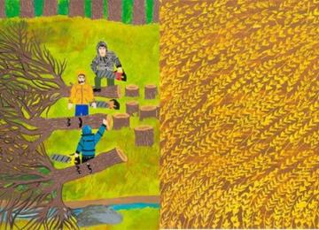 The paintings, created by pencil and ink, portray human and animal forms, which…