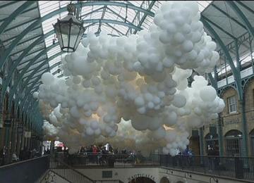 Covent Garden, a district in central London, is hosting a unique exhibition of hundreds of thousands of balloons.
